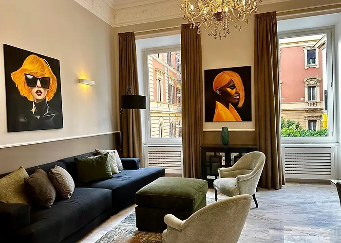 The 2-bedroom apartment lies in the Via Veneto district of Rome, 1.3 miles from Largo di Torre Argentina Ruins. This apartment is not far from Gardens of Sallust, while Piazza di Spagna metro station is around a 10-minute walk away. The Great Maison apartment also lies 0.2 miles from the noisy square "Piazza Barberini".
